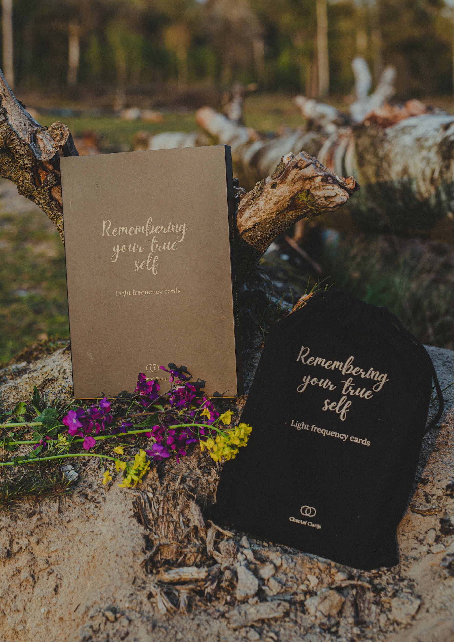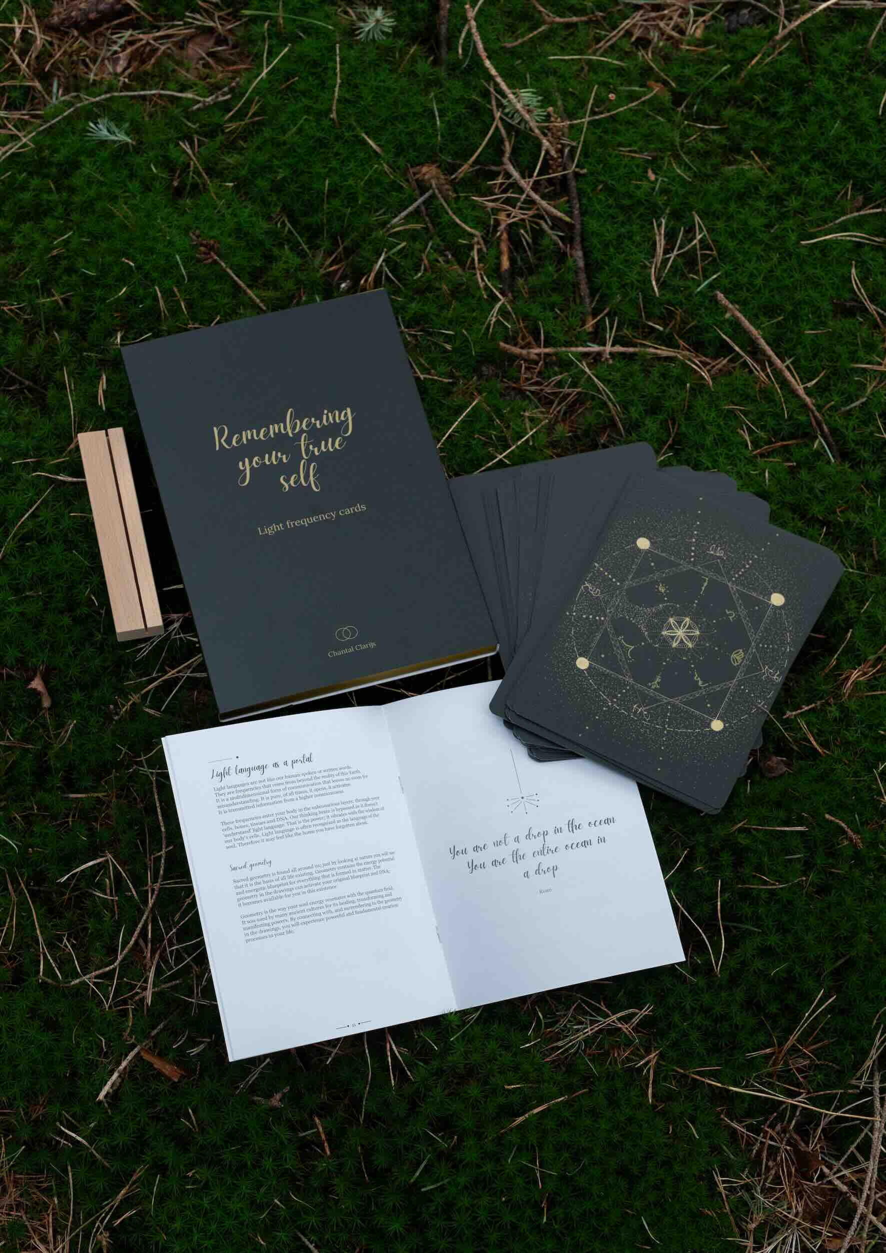 Deze licht frequentie kaarten zijn meer dan een kaartenset; iedere kaart is een levend licht en neemt je mee op een innerlijke reis. Iedere kaart is gechanneld door Chantal Clarijs. Ze gebruikt haar lichaam bewust als energetisch kanaal en tekent vanuit die verbinding met de hand vormen van levend licht kunst. Ze ontvangt deze universele frequenties moeiteloos vanuit andere realiteiten en dimensies. Met haar tekeningen maakt ze levende energieën, werkelijkheden en werelden die met het blote oog niet te zien, zijn zichtbaar. Hiermee belichaamd ze haar multidimensionale identiteit en is ze een sleuteldrager van deze tijd voor andere mensen.