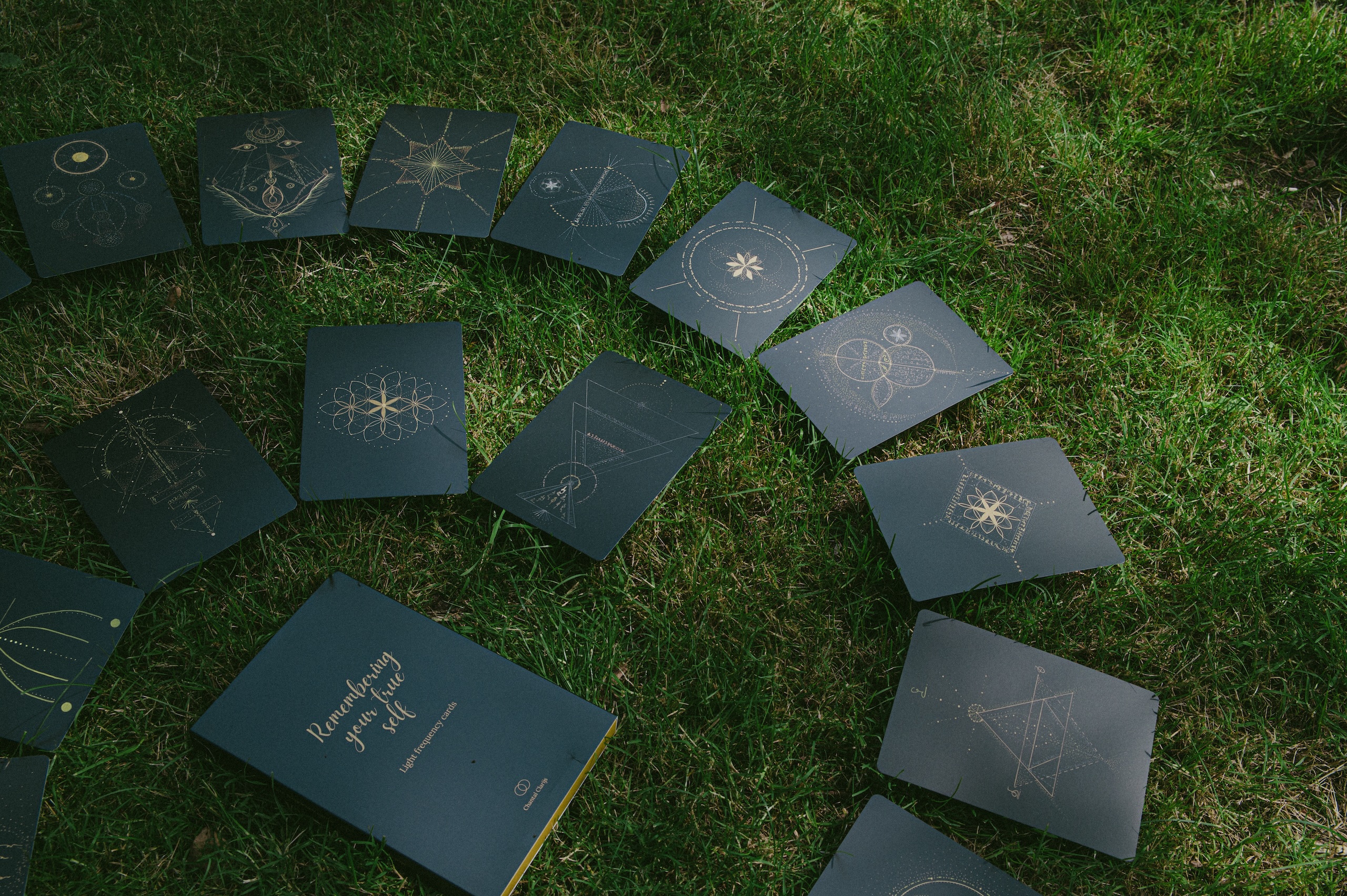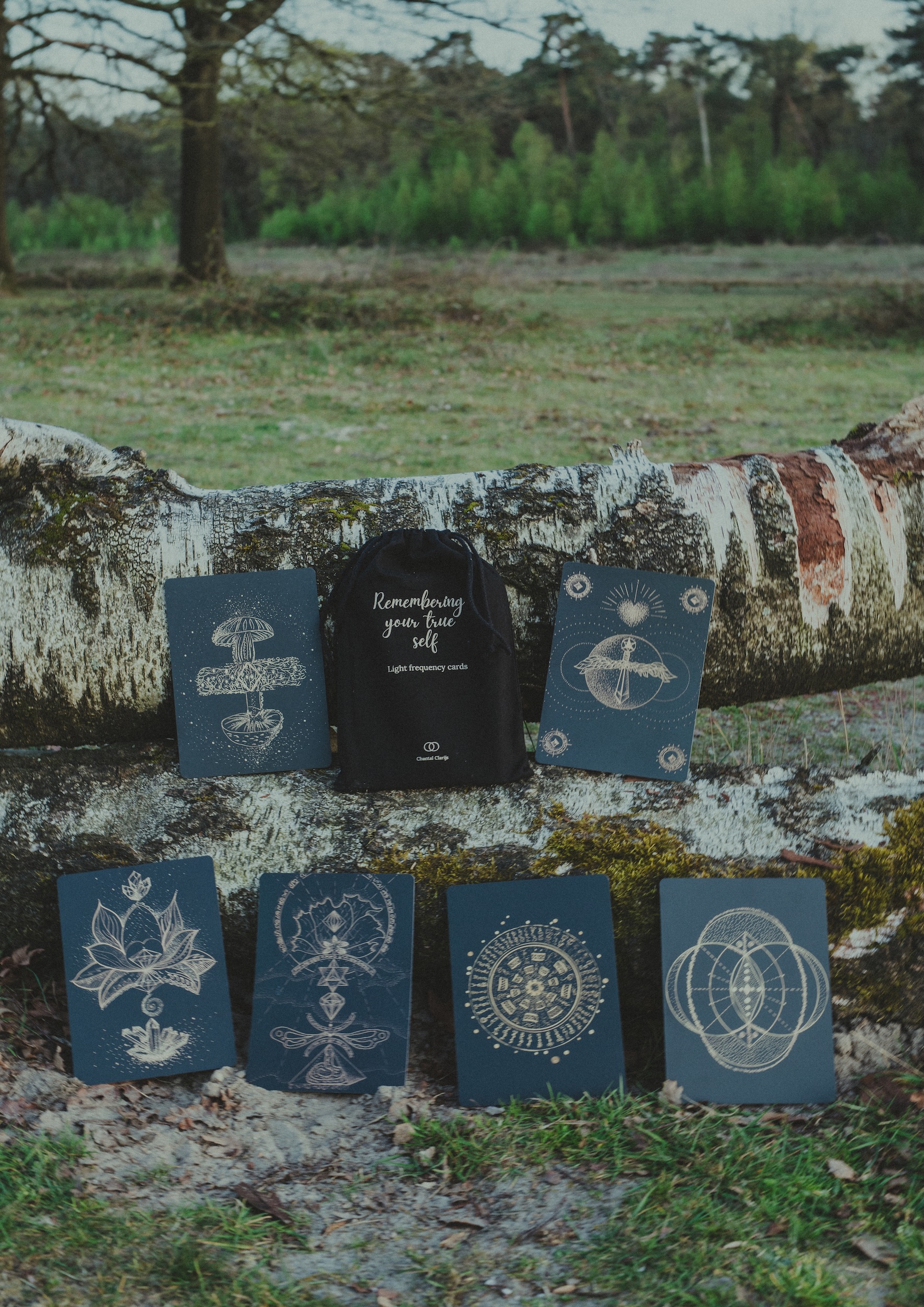 Licht Frequentie kaarten – (Her)inner je ware Zelf – 48 Handgetekende Kaarten met Heilige Geometrie, Frequentiecodes en Lichttaal – Levend Licht – A5 Formaat