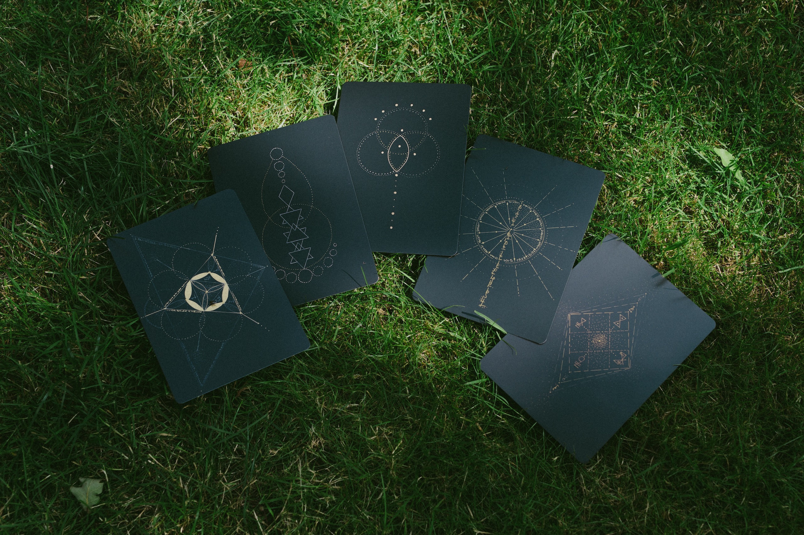48 nieuwe unieke kaarten met handgetekende afbeeldingen, heilige geometrie en energetische lichttaal